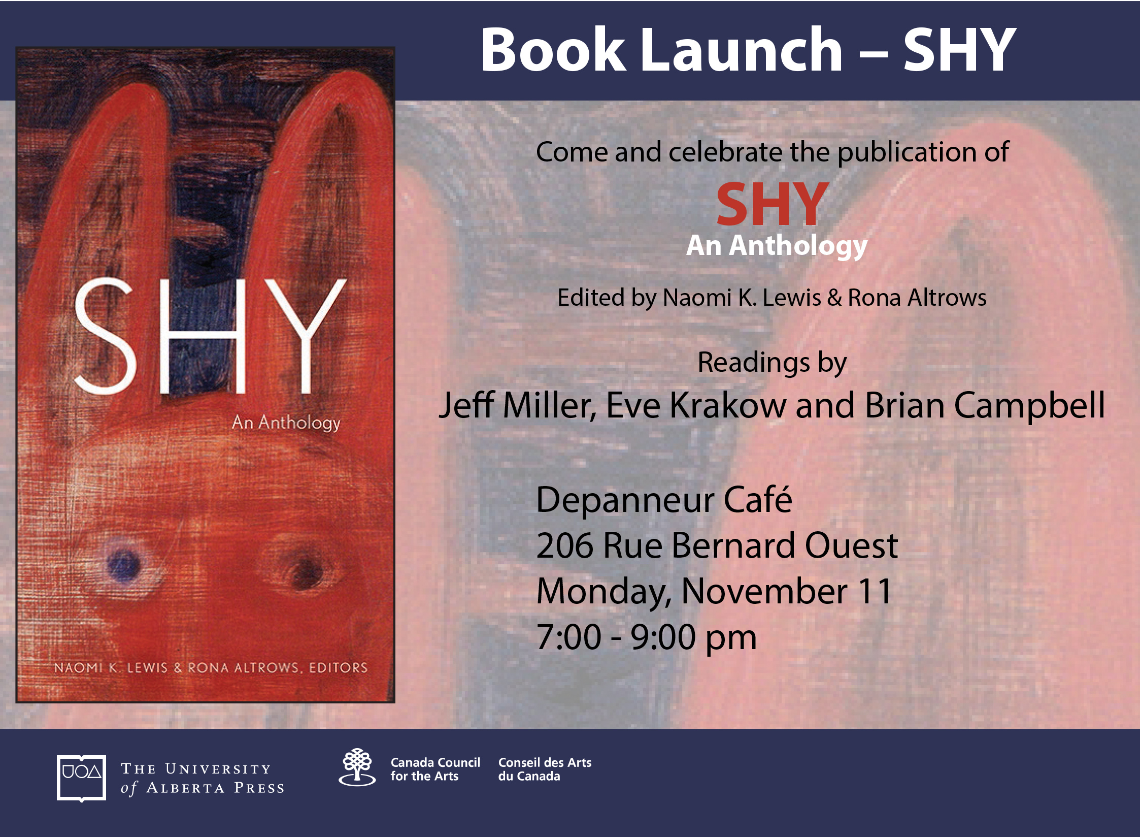 Nov. 11 Launch of Shy Anthology, Depanneur Cafe, Montreal